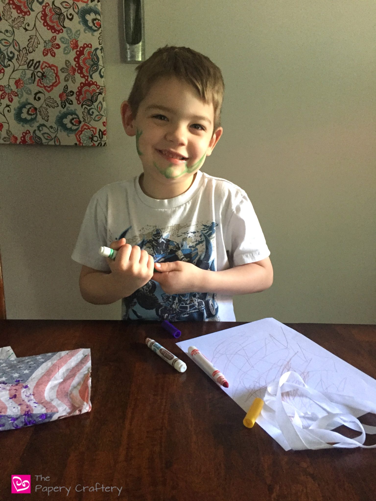 My helper decided to make his face “like the Hulk’s”. Β He’s just too adorable!