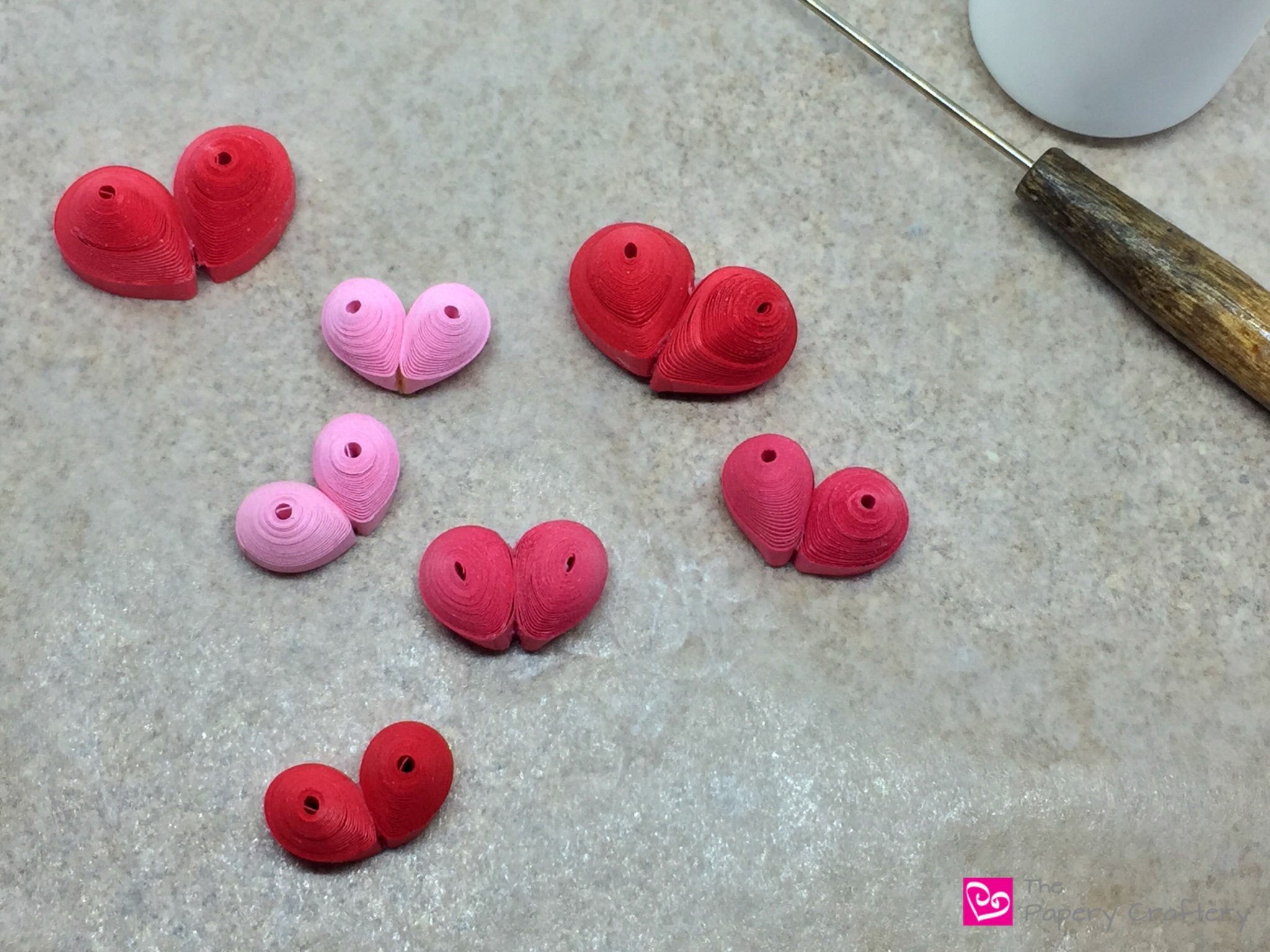 If you’d like to make larger hearts, you simply have to add more strips to the coils as you’re rolling them. Check out my post on quilling paper acorns to see some photos on how to make bigger 3-D quillings.