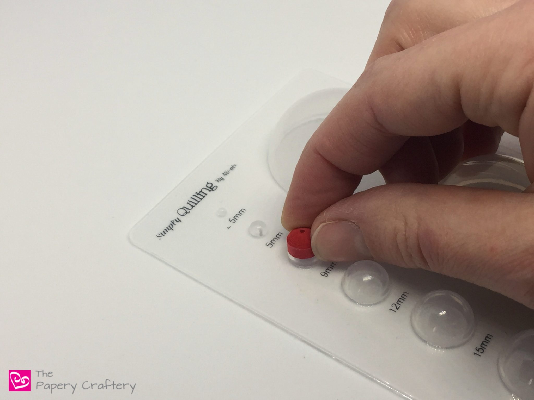 This project was the first time I’ve been able to use an actual quilling mold for make my domes. It definitely makes for a Β speedier and more consistent bubble in my coils. Β If you’re not looking to pick up a mold, you can easily DIY your 3-D quilling, just like I did when I made my daffodils and Β holly berries.