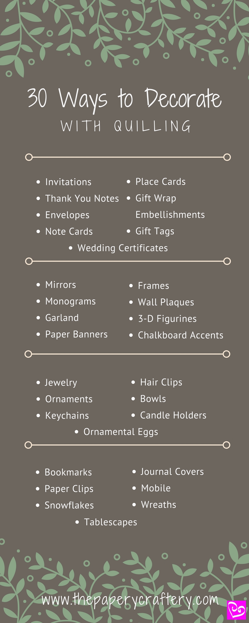 So this week, I’m sharing my list of 30 ways to decorate with quilling.