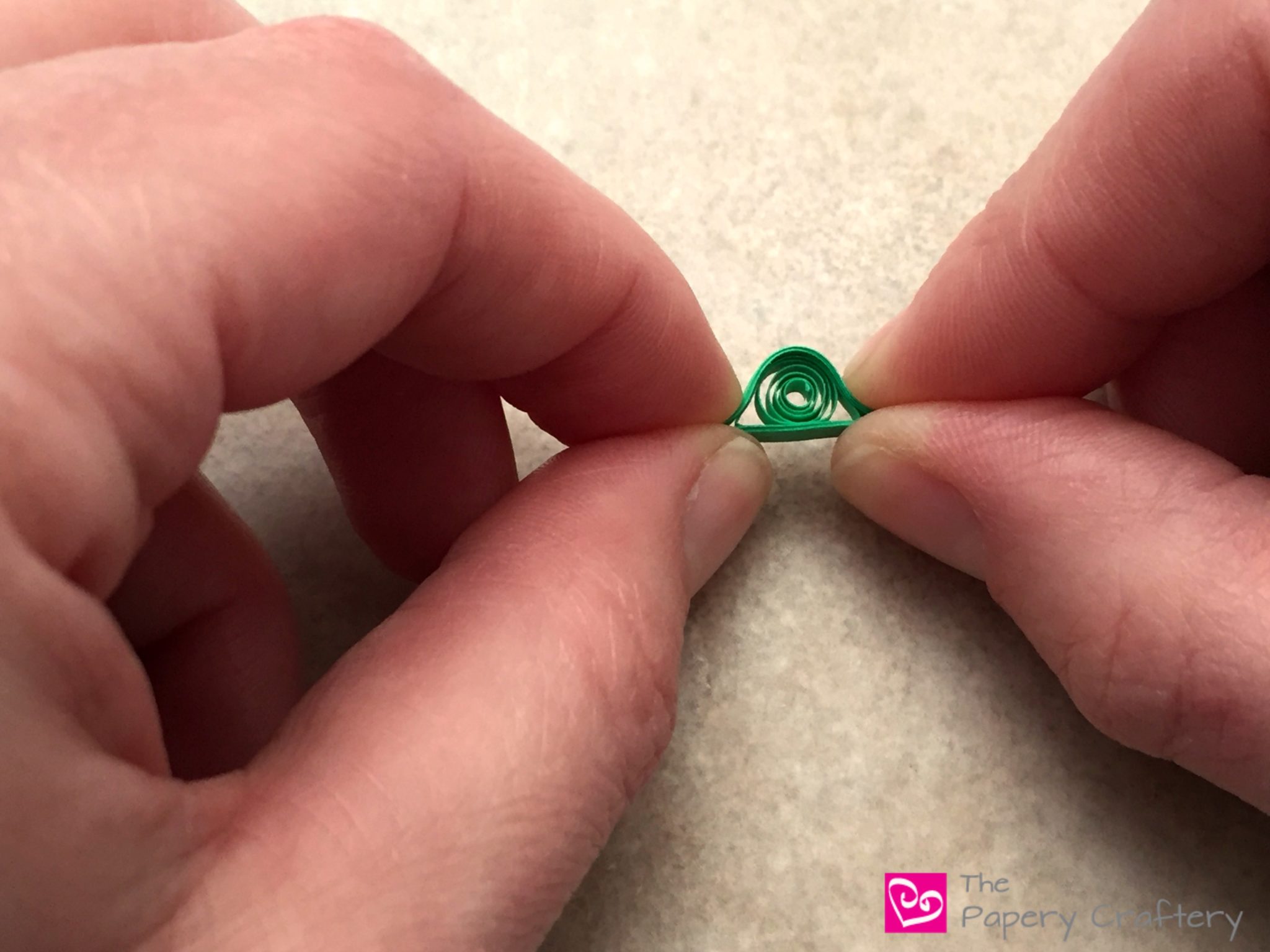 Teardrops are a great place to begin working on quilling shapes, because they’re just a matter of gently squeezing one side of your loose coil.