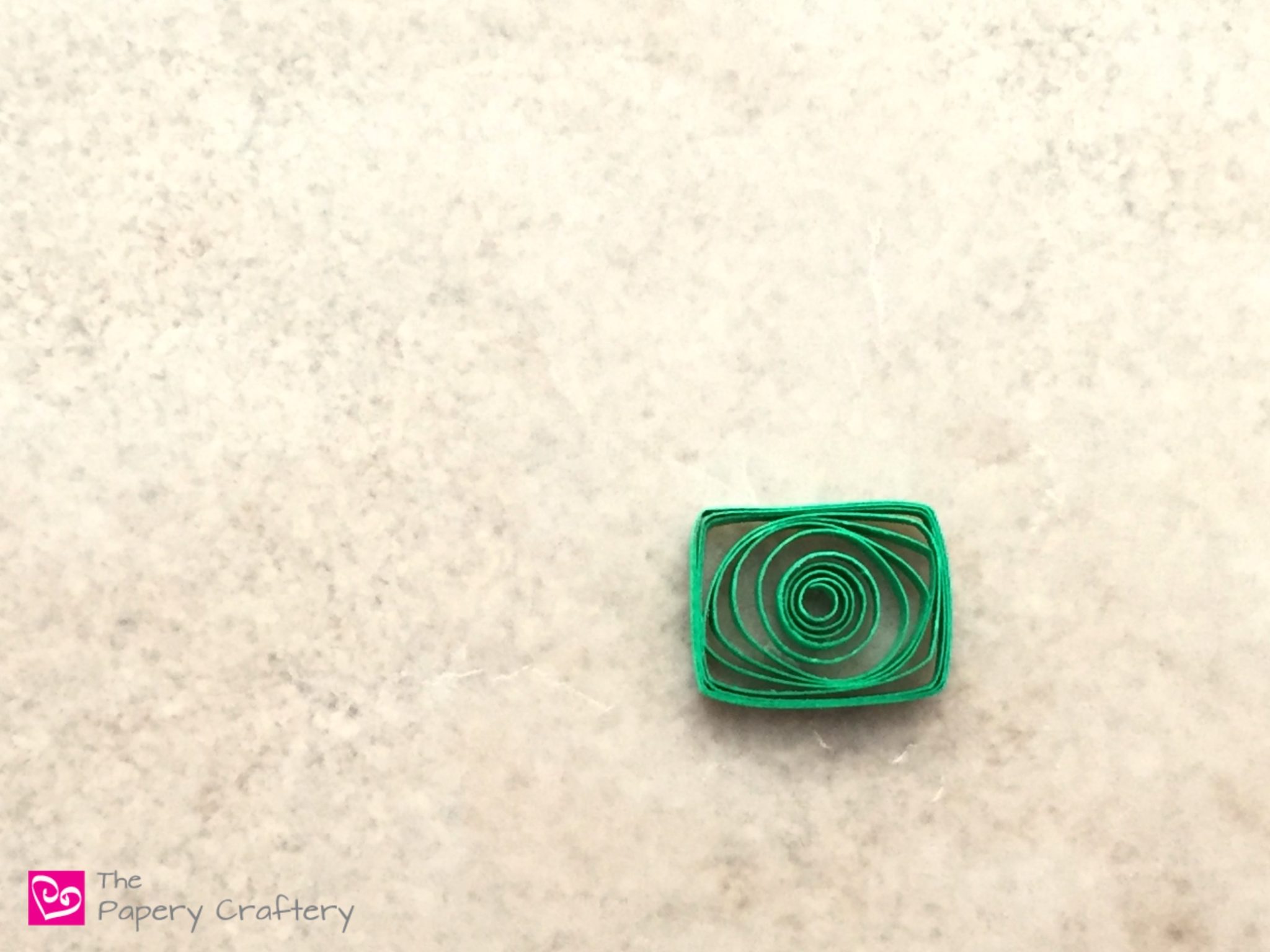 A quilling paper square is formed by pinching either side of the coil in an even way.