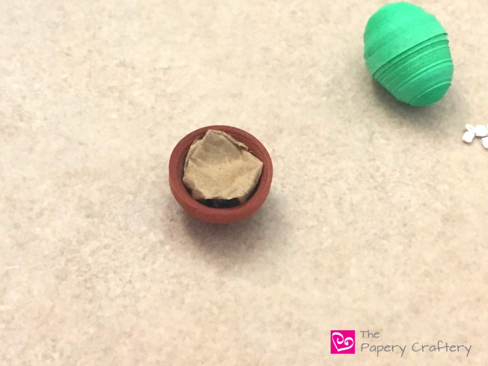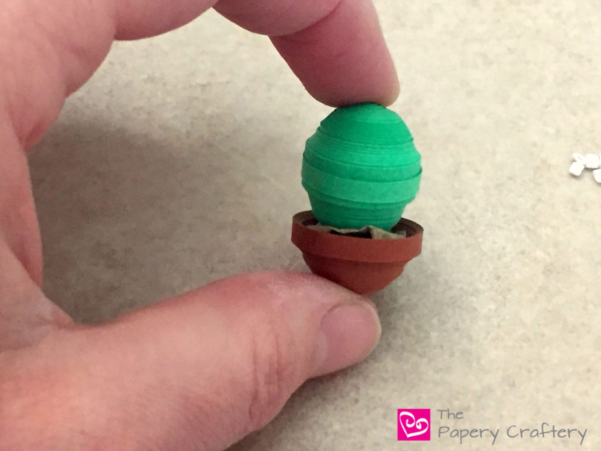 I wanted my cactus to sit up a bit in the pot, as if it was really planted. A balled-up bit of brown Kraft paper did the trick.