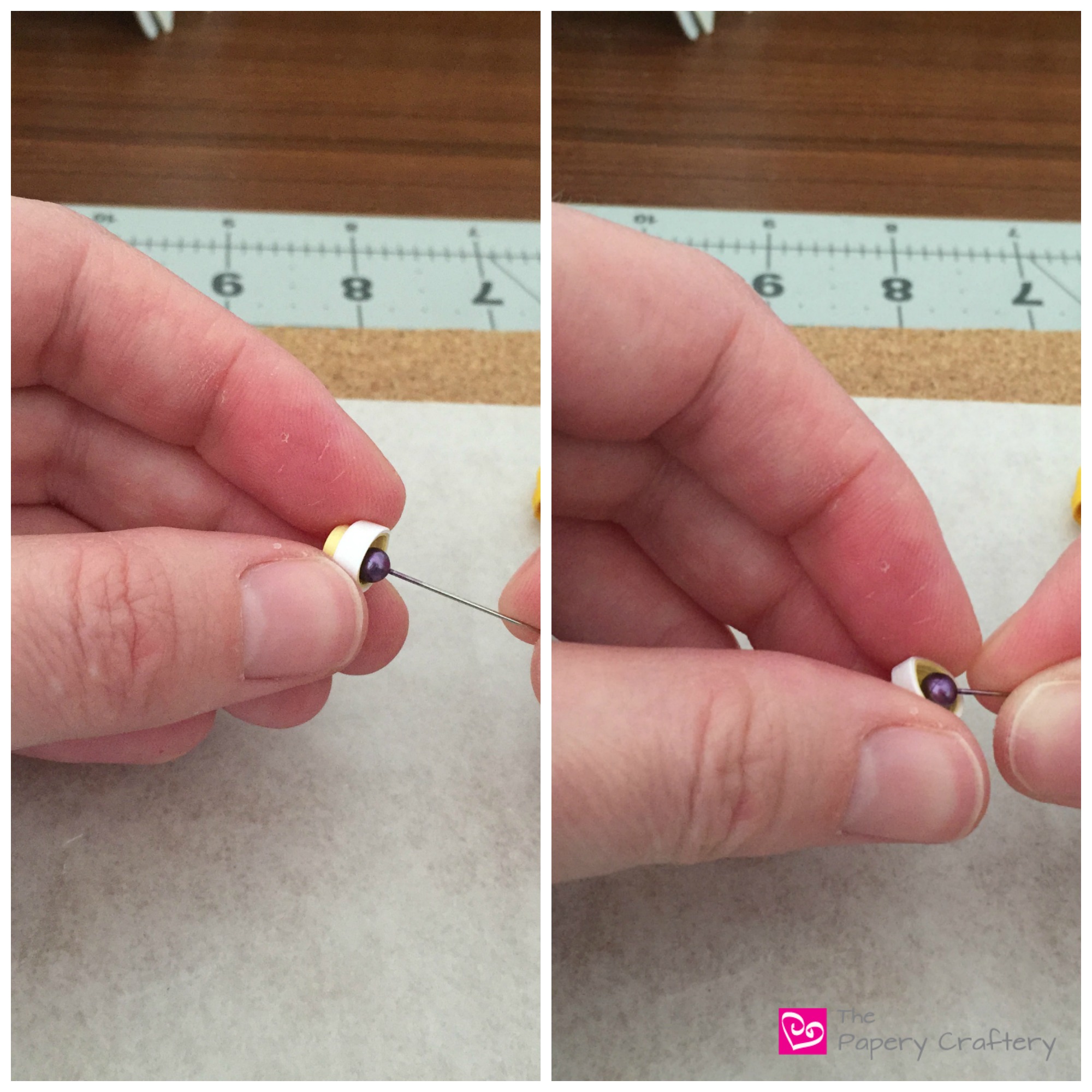 Use the rounded pin again to push out gently for a domed petal. Glue the petal in the same way as the daffodil center to keep the shape.