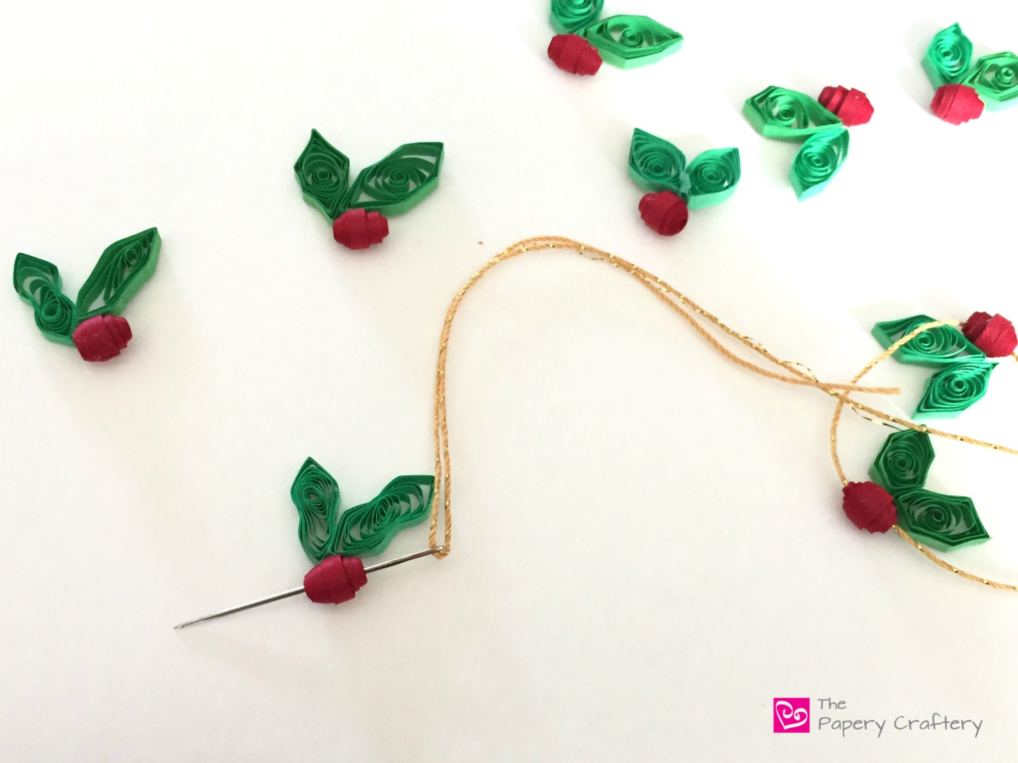 I think this quilling paper holly garland would be adorable on snowy white cone trees, too!