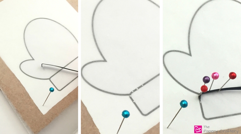 After printing, place the mitten of your choice on top of your quilling workboard, and cover with a sheet of wax paper.